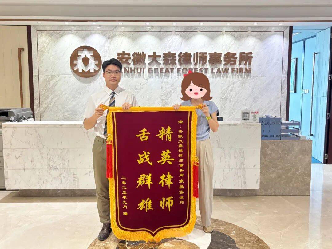 近日,安徽大森律师事务所的袁昌鑫律师收到了当事人赠送的一面绣有“精英律师 舌战群雄”的锦旗。