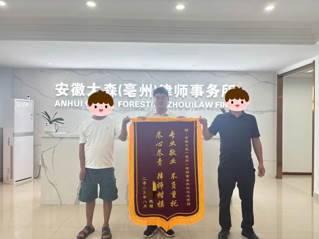 9月8日,安徽大森(亳州)律师事务所的刘兴志律师收到了当事人赠送的一面绣有“专业敬业 不负重托,尽心尽责 律师楷模”的锦旗。