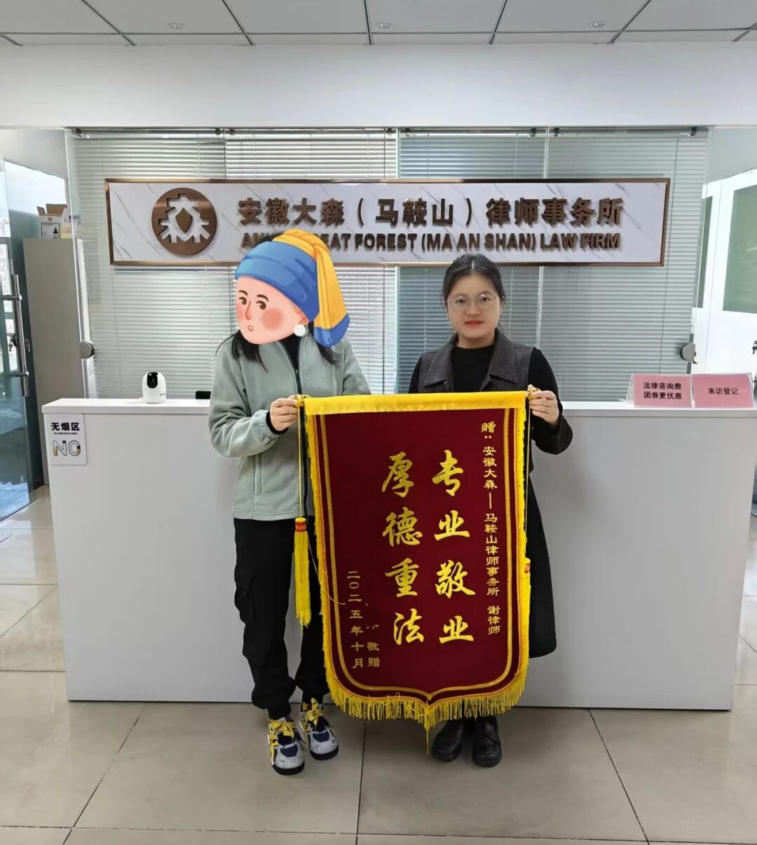 10月24日,大森(马鞍山)律师事务所的谢雪晴律师收到了当事人赠送的锦旗。