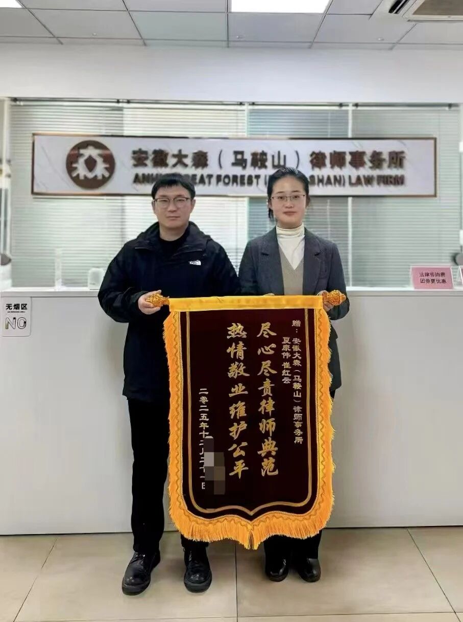近日,大森律师事务所夏康伟、崔红云律师获赠锦旗,上书“尽心尽责律师典范,热情敬业维护公平”。